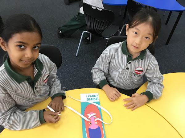Mr Rankin taught us some new skills today. At first we found them quite challenging but with a little practice we got better at doing them. The first two challenges were to thread a shoe with a shoelace and then to tie the shoelace. It was hard to get the laces exactly the same like they are in a show! After much trial and error we managed to get the threading bit done. Then on to learning how to tie the lace. Our fingers had to work hard to make loops and to tie knots! Whew! Next was our third challenge and that was how to thread a needle and to use the thread to sew. We needed to push our needle into the holes on some material and then to put the thread through. Each time we would go in and out of the holes with our needle and thread. Some of us managed to sew lots of rows with stitches. Mr Rankin sewed another piece of material onto our sewing piece and turned it into a bookmark! We are very proud of our achievements!